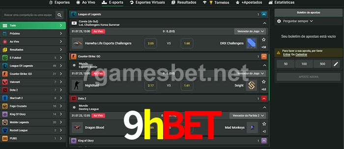 O 9hbet oferece uma grande seleção de opções de apostas em e-sports com probabilidades competitivas